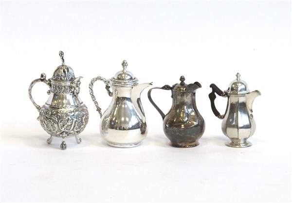 Lotto composto da quattro piccole caffettiere in argento di manifatture ed epoche diverse (g lordi 700 ca.) (lievi difetti)