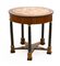 Tavolo tondo lastronato in noce con fascia ad un cassetto poggiante su cinque c