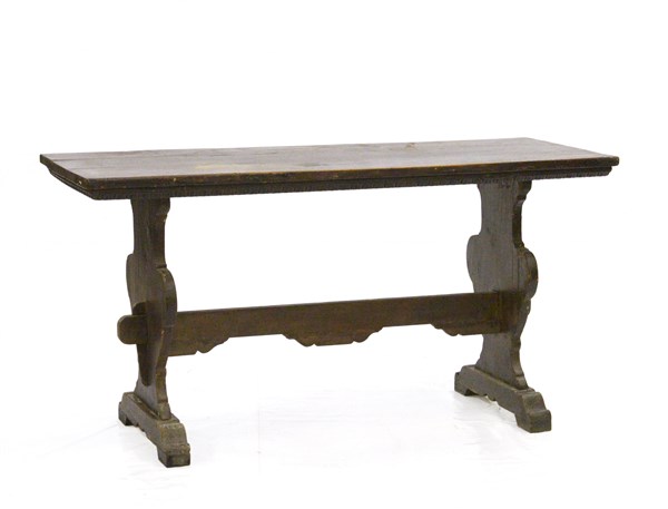 Tavolo con sostegni ad asso di coppe riuniti da traversa (cm 153x78x58) (difett