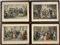 Gruppo di quattro litografue francesi a colori raffiguranti nobili in costumi d'epoca, in cornici (cm 38x52) (difetti)
