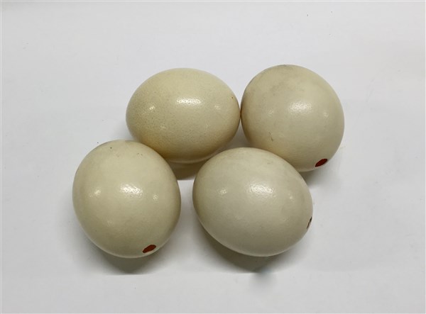 Lotto composto da quattro uova di struzzo di misure diverse (lievi difetti)