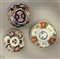 Tre piatti in porcellana in stile Imari a decoro floreale (d. cm 27) (difetti)