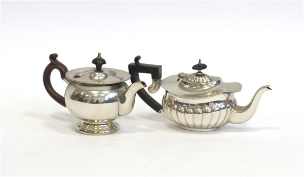 Lotto composto da due caffettiere in argento con manici in legno. Marchi inglesi (g lordi 670 ca.) (lievi difetti)
