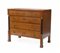 Comò lastronato in noce a quattro cassetti con mezze colonne ebanizzate e piedi