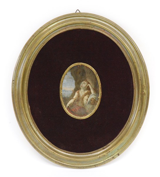 Scuola del secolo XVIII. Maddalena. Olio su rame ovale (cm 11x8) in cornice in metallo (difetti e mancanze)