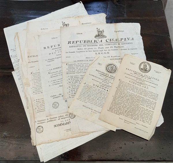 Lotto composto da dieci tra Grida e Circolari della fine del secolo XVIII, alcuni della Repubblica Cisalpina (difetti)
