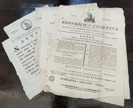 Lotto composto da dieci tra Grida e Circolari della fine del secolo XVIII, alcuni della Repubblica Cisalpina (difetti)