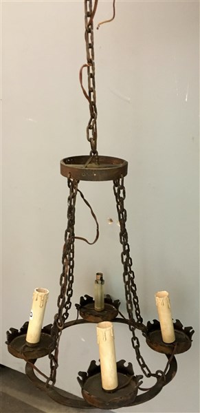 Lampadario a quattro luci in ferro sorretto da catene (d cm 35) (difetti)