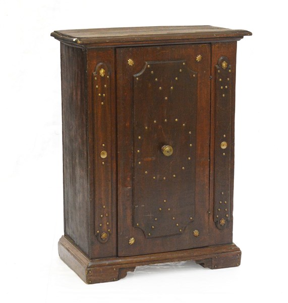 Antica credenzina emiliana ad un'anta pannellata e decorata a borchie in bronzo