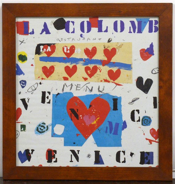 Stampa raffigurante un opera di Roger Selden realizzata per il ristorante La Colomba, Venezia (cm 34x32). In cornice
