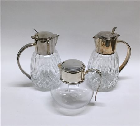Tre versatoi in cristallo e argento di forme e misure diverse (difetti)