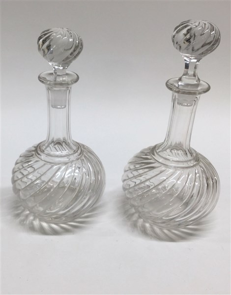 Coppia di bottiglie in cristallo molato con tappi (h cm 26)