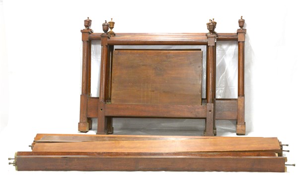Lotto composto da una coppia di letti ad una piazza ed uno ad una piazza e mezza con montanti a colonna tornita terminanti a vasi (difetti e mancanze)