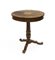 Tavolo da salotto con piano tondo lastronato in noce e intarsiato al centro a v