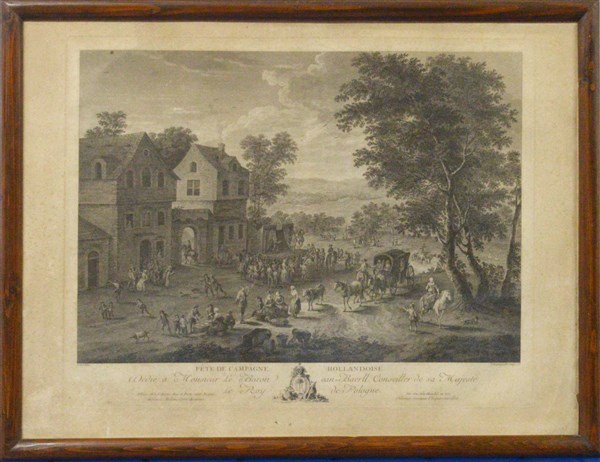 Incisione del sec XVIII di François Dequevauviller raffigurante una festa campestre, in cornice