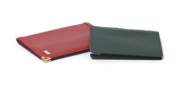 Lotto composto da un piccolo portadocumenti in pelle rossa logata e un porta notes in pelle verde bottiglia (difetti e segni d'uso)