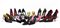Lotto composto da dieci paia di scarpe in diversi materiali, forme e colori alcune decorate con strass (tg. 35/38) (difetti e segni d'uso)