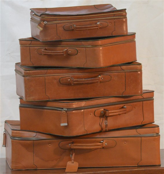 Lotto composto da un set di 5 valigie in cuoio (varie misure) (gravi difetti)