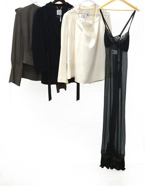Lotto composto da tre completi di cui due, giacca con gonna e uno, camicia con gonna, uniti ad un abito sottoveste a pois (tg. 40/42) (difetti e segni d'uso)