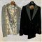 Lotto composto da due completi, uno smoking, giacca con pantalone in velluto nero con risvolti in raso e interno animalier e l'altro stampa a zebra con applicazioni bianche e nere (tg. 40/42)