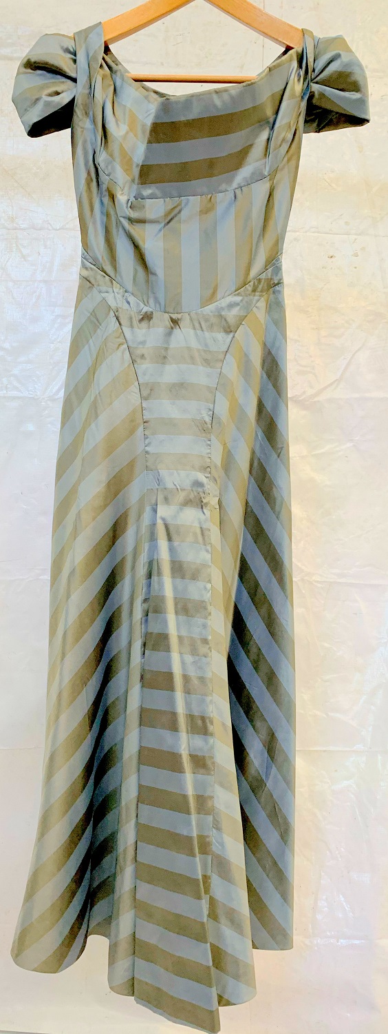 Abito lungo senza maniche in taffetas a righe tortora e azzurro aviazione (tg. uk 10)