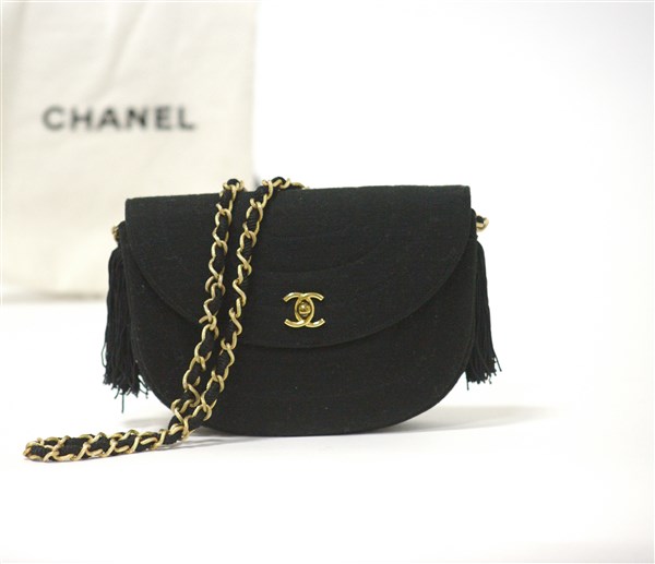 Lotto 1347 | Borsetta da sera nera con tracolla in jersey e gros-grain, due nappe la