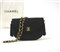 Borsetta da sera nera con tracolla in jersey e gros-grain, due nappe laterali. Logo trapuntato interno, chiusura logata in metallo placcato oro (cm 20) (segni d'uso)