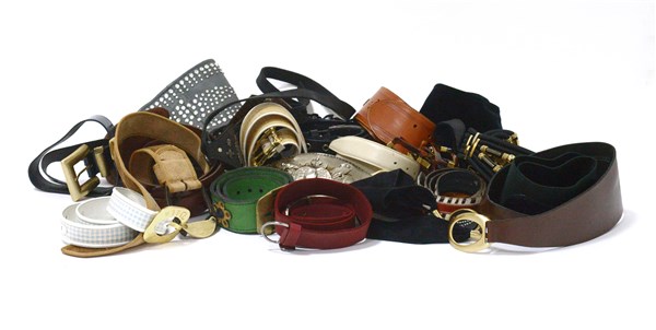 Lotto di 22 cinture di forme, materiali e colori differenti (tg. verie) (difetti e mancanze)