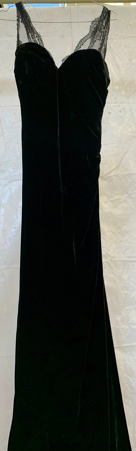 Abito lungo in velluto nero e spalline in pizzo (tg. 40)