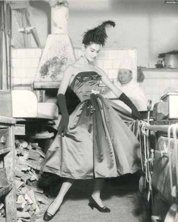 Una stampa fotografica vintage alla gelatina sali d'argento con passepartout "High Society in trattoria" 1957 per Simonetta (Colonna di Cesarò)