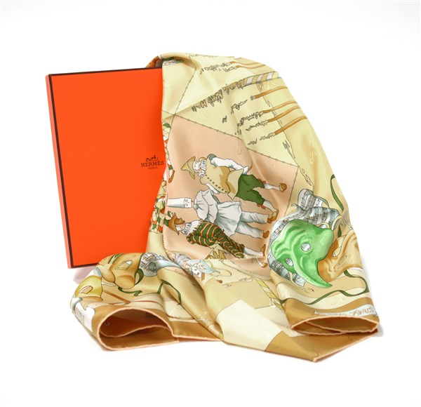 HERMÈS Raro foulard in seta jacquard "Carnaval de Venise", Hubert de Watrigant