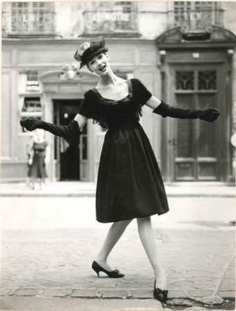 Una stampa fotografica vintage alla gelatina sali d'argento con passepartout per Jeanne Lanvin 1958