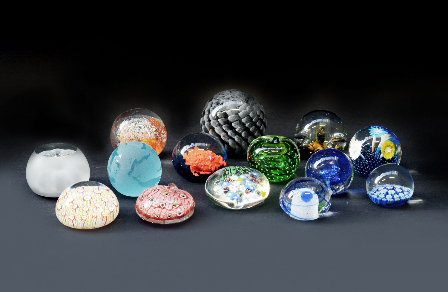 Lotto composto da quattordici presse-papiers in vetro incolore di diversa fattu