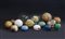 Cartone contenente numerosi presse-papiers in vetro e materiali diversi (lievi