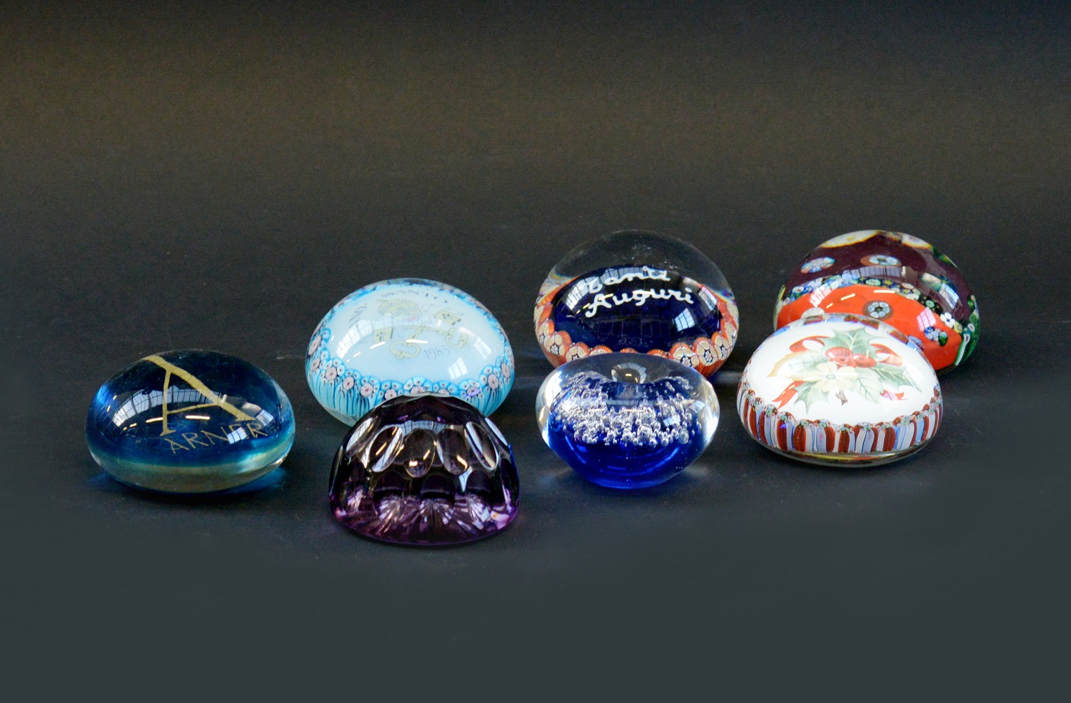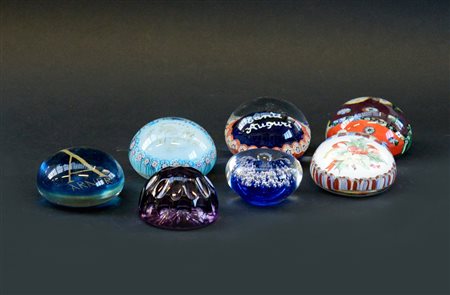 Gruppo di sette presse-papiers di diversa fattura ed epoca (lievi difetti)