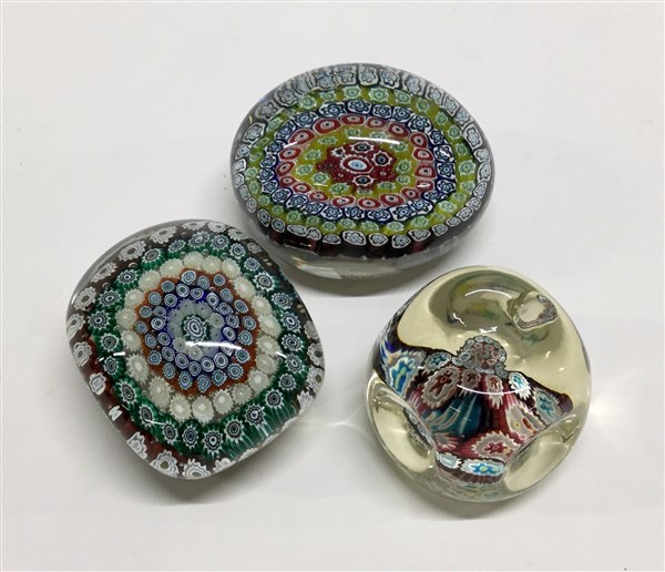 Tre presse-papiers decorati a murrine (lievi difetti)