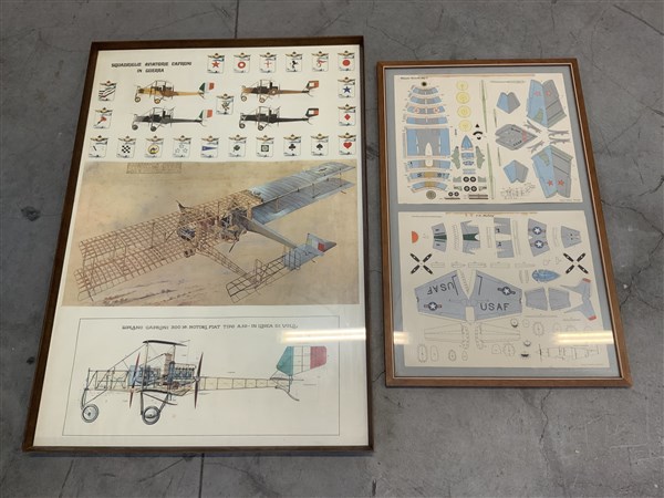 Due stampe di diversa epoca inerenti l'areonautica, uno sugli aeroplani Caproni. In cornici