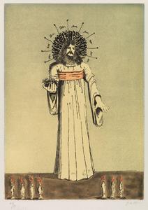 Giorgio de Chirico Volos 1888 - Roma 1978 L'immagine eccelsa, 1977 Acquaforte/acquatinta, es. 46/99, cm. 47x34 (lastra), cm. 53x38,5 (carta) Firma a matita sul margine in basso a destra: G. de Chi- rico, tiratura in basso a sinistra: 46/99, timbri a secco GdeC e Alberto Caprini Stampatore in Roma. Al verso: etichetta con certificato di garanzia Edizioni Bora. Tiratura di 99 esemplari numerati da 1/99 a 99/99, 25 esemplari numerati da I/XXV a XXV/XXV, 12 esem- plari colorati a mano. Bibliografia: Edoardo Brandani, Giorgio de Chirico. Ca- talogo dell'opera grafica 1969-1977, Edizioni Bora, Bo- logna, 1990, p. 59, n. 44.