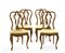 Gruppo di quattro sedie con schienale sagomato a giorno, gambe e fascia mosse e