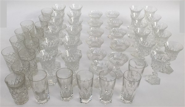Parti di servizi in cristallo composti da undici coppe, undici bicchieri cilindrici, dodici bicchieri da vino rosso, undici da vino bianco, sei bicchieri diversi (rotture)