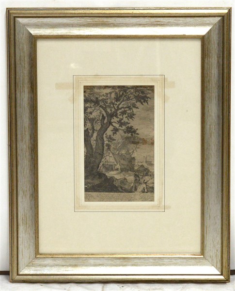 Antica incisione raffigurante "Albero con cascinali" (cm 33x20) in cornice (difetti)
