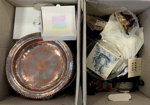 Due cartoni contenenti numerosi oggetti di diverso uso e fattura (difetti)