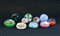 Cartone contenente dieci presse-papiers in vetro e materiali diversi (lievi difetti)