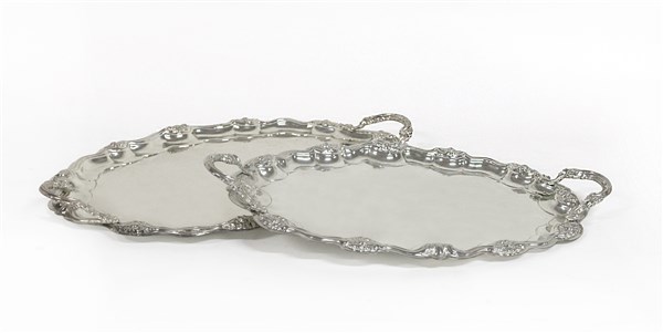 Lotto 1706 | Lotto di due vassoi biansati in metallo argentato, misure diverse