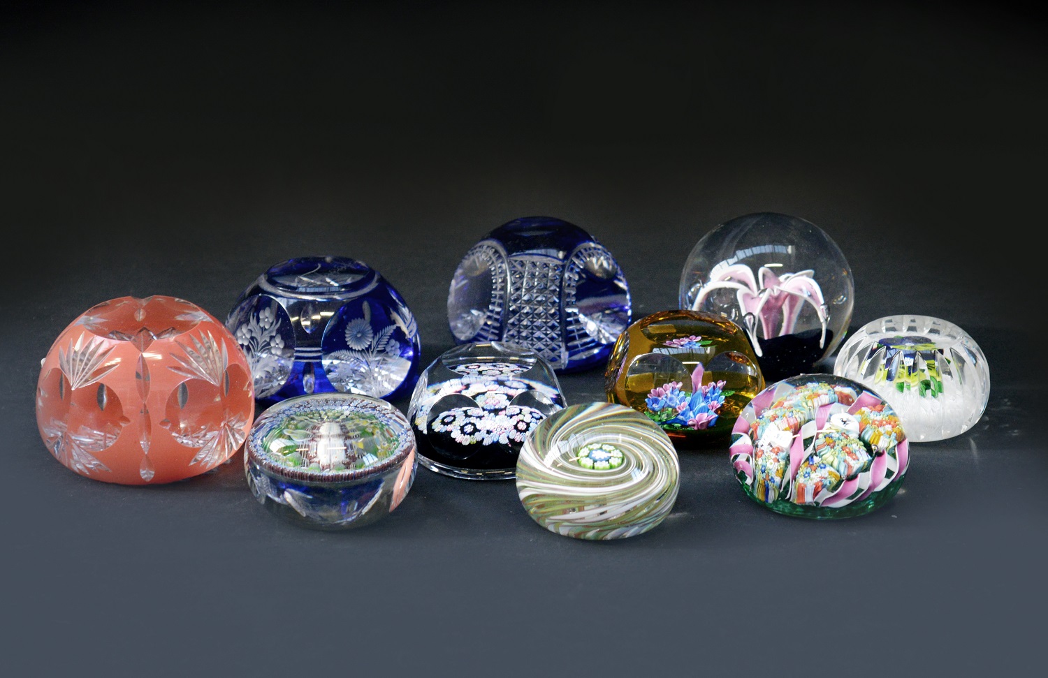 Cartone contenente dieci presse-papiers di epoche e manifatture diverse (lievi difetti)