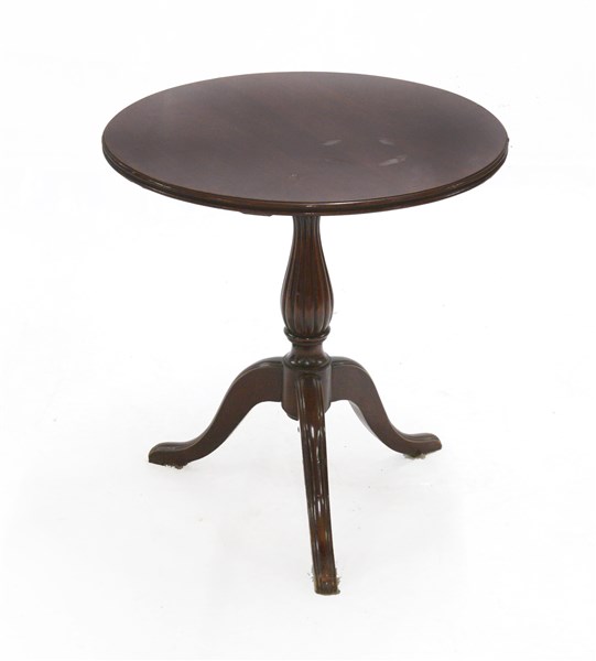 Tavolino da salotto con piano tondo, gamba centrale tripode (d cm 52, h cm 56)