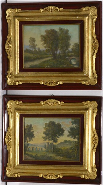 "Paesaggi" coppia di dipinti ad olio su tela (cm 17x23) Firmati in basso a destra. In cornici