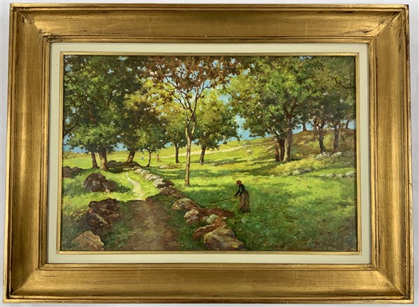 Ignoto del XX Secolo "Il lavoro nei campi" olio su tavola (cm 37x56) In basso a destra reca iscrizione G.F.Piana. In cornice