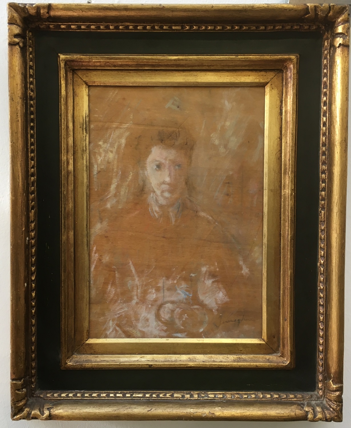 Pio Semeghini "Ritratto femminile" olio su compensato (cm 40x29) Firmato in bass
