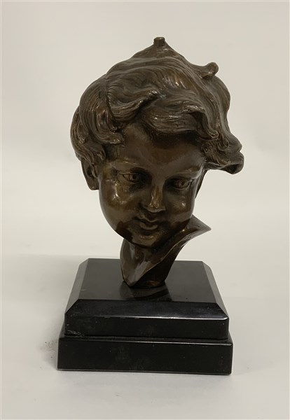 Ignoto "Testa di fanciullo" scultura in bronzo (h cm 22) poggiante su base in m